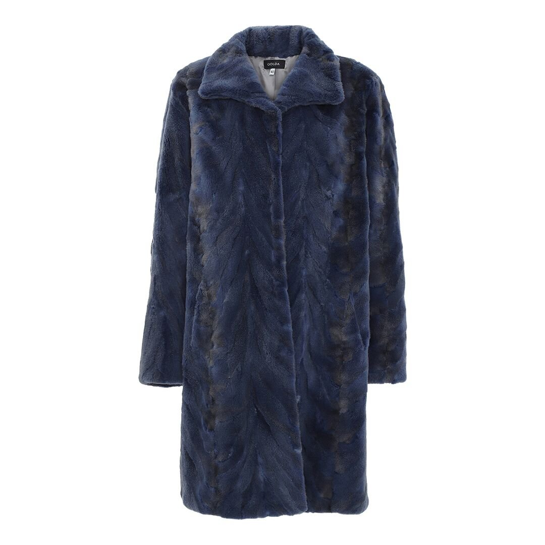 Blå minkfrakke. Vi kalder farven “jeans-blå”. Minkskindene i pelsen er skåret på en måde, så pelsen får et flot farvespil. Denne pels er ikke kedelig, men samtidig super klassisk. En smart pels, der både med hensyn til holdbarhed og mode vil være en god investering. Længden er 80 cm. Denne blå minkfrakke har en flot krave, som kan lukkes for at holde kulden ude. Dette gør, at minkjakken er dejlig varm, at have på en kold vinterdag. Den er også velegnet til at bære sammen med et lækkert tørklæde. Jakken er foret og har to sidelommer.