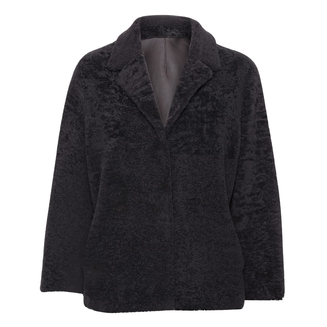 Kort sort pelsjakke vendbar. Velegnet til både selskabs- som hverdagsbrug. Hvis du bruger den med pels-siden ud af er det en festlig og fin jakke. Vender du den om på rulamssiden, er det en praktisk jakke, som er mere robust, da der er en læderside. Kort sort pelsjakke vendbar åbnes med trykknapper. Kraven kan både åbnes og lukkes, så den kan bruges det meste af året. Ærmerne kan justeres i længden ved at oprulning. Skindene som bruges til pelsen er i en let kvalitet.