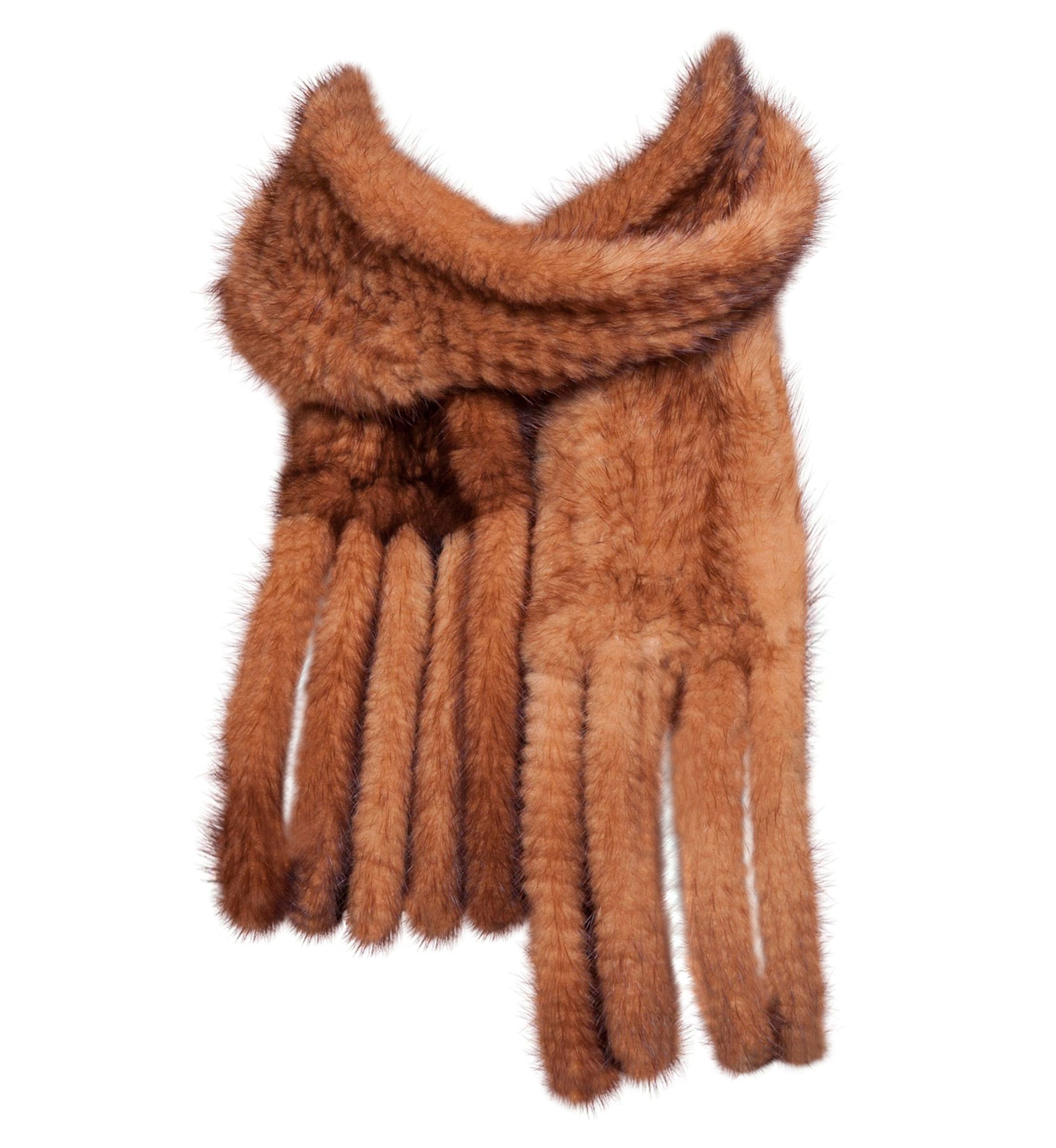 Minkhalstørklæde golden - Størrelsen er 110cm x 11cm. Den strikkede mink gør, at halstørklædet ikke vejer så meget.