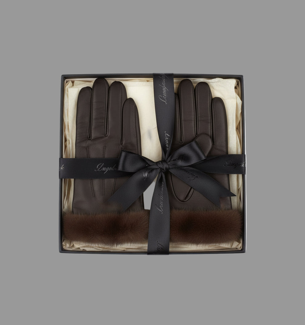 Disse skindhandsker er lavet af det blødeste, ægte mink fra Danmark, så du garanteres et par handsker i høj kvalitet. Handsken har smukke detaljer, såsom syninger på håndryggen og minkpels omkring håndledet, hvilket giver et yderst elegant look. Handsken fås i to farver, brun og sort, så du kan vælge den variant, som du elsker mest.