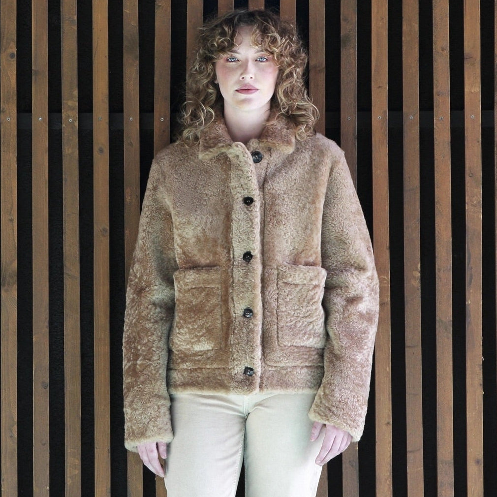 Denne pelsjakke udtrykker virkelig et “statement” med et helt unik ”look”. Knaplukning og udvendige lommer.