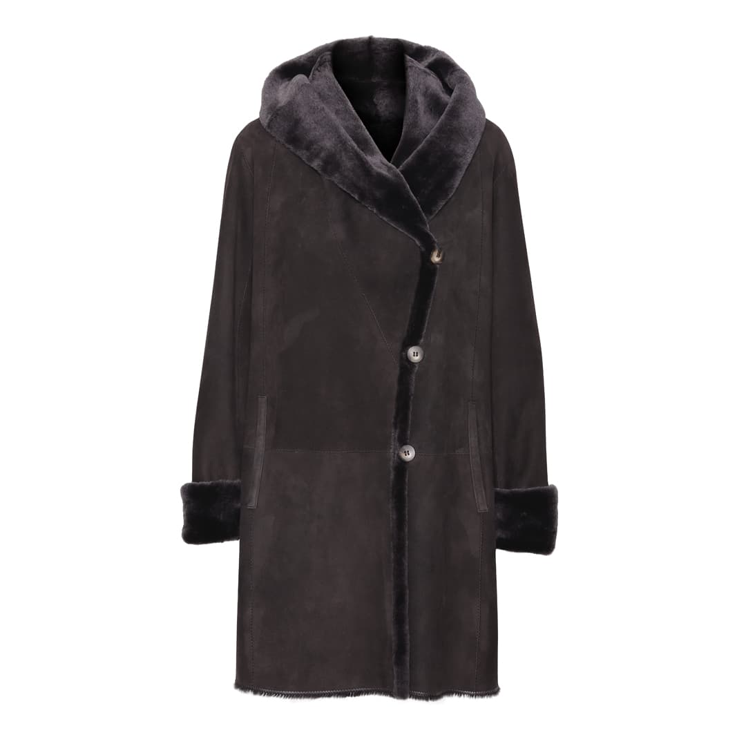 Rulamsfrakke brun-grå med hætte vendbar. Denne klassiske rulamsfrakke er vores absolutte topmodel Den er lavet i de bedste skind, som gør frakken meget let, samtidig med at du kan holde varmen. Du kan vende rulamsfrakken om og pelssiden med det fineste skind, gør at frakken vil fremstå, som en eksklusiv pels. Snittet i denne klassiske pelsfrakke/rulamsfrakke er helt unik. Der er ikke sparet på skindet. Dette gør at rulamsfrakke brun-grå med hætte vendbar er perfekt at tage på til finere brug, hvor man ellers ville bruge en pels eller uldfrakke. Du kan eventuelt supplere med pelstilbehør.