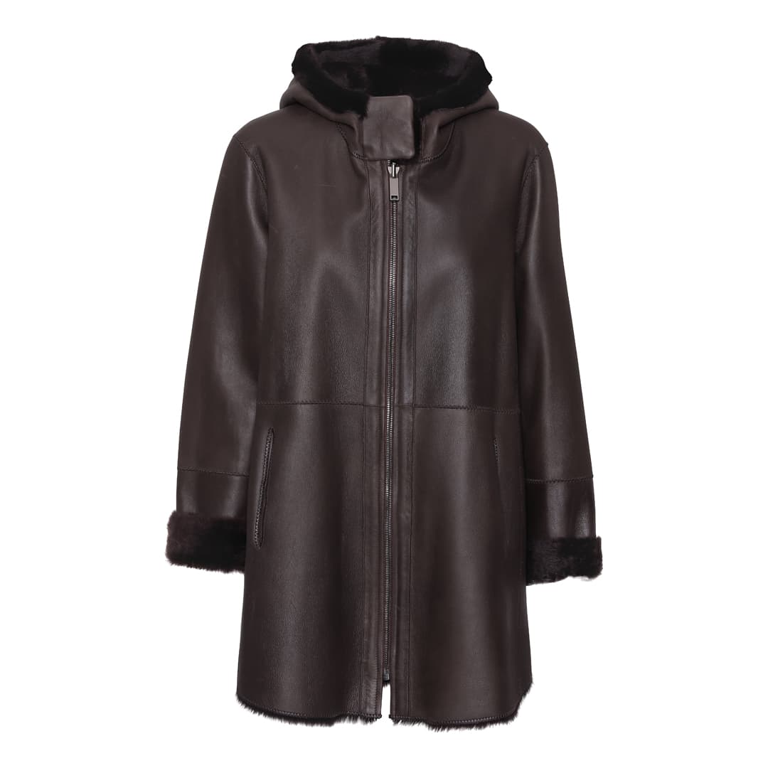 Rulamsfrakke læder hætte. Rulamsfrakken er vendbar med en pelsside og en læderside i glat læder. Ønsker du en flot og praktisk rulamsfrakke er dette et godt bud. Du kan virkelig holde kulden ude. Der er hætte og høj krave, som bliver lukket med magnet-lukning. Den glatte læderside på den en vendbare side, gør rulamsfrakke læder hætte til en solid frakke, som kan modstå blæst og vådt vejr. Samtidig er den meget holdbar. Pelssiden er blød og lækker, som gør frakken lækker og behagelig at have på. Længden er 80 cm. Finish på jakken er helt fantastisk i topklasse. Som en detalje er der syet en flot pelskant på hætten. Ønsker du pelsfrakken i en anden variation kontakt info@margitpels.dk.