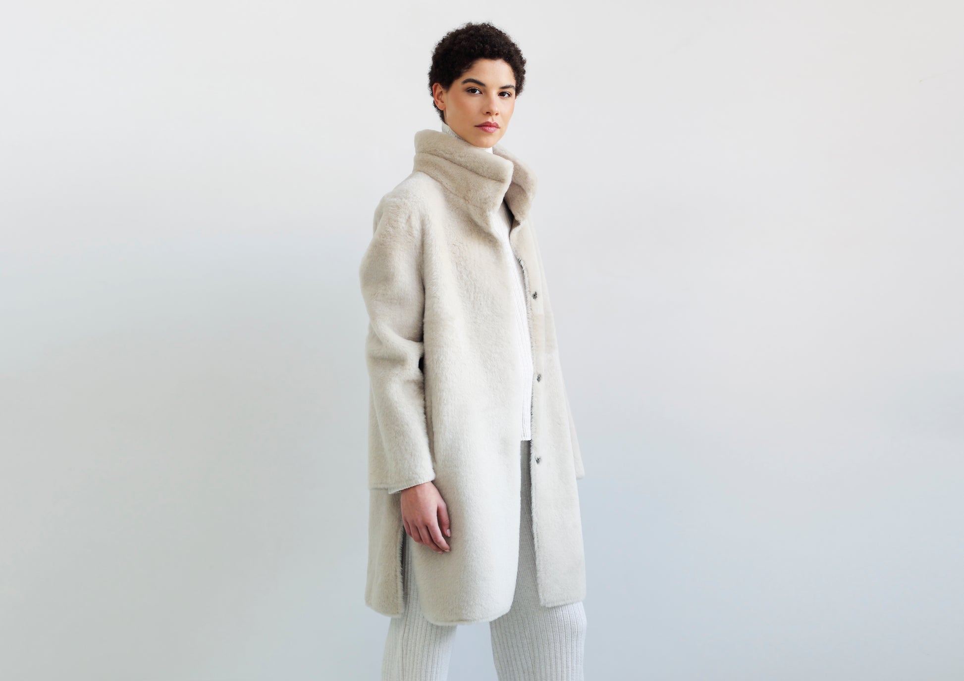 Rulamsfrakke vendbar slids i begge sider - lukkes med trykknapper. Unik model - til den der vil "skille sig ud", men samtidig fremstå presentabel. Hvis du vender jakken er det den glatte ud af.
