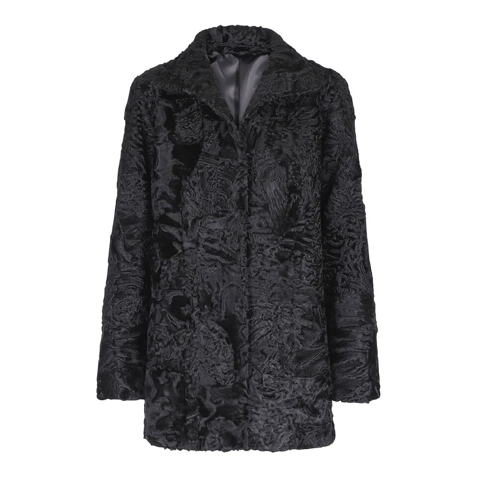 Sort swakarajakke lavet af vores egne skind i vores eget design. \nElegant og praktisk jakke med kinakrave og to sidelommer. Jakken er foret og meget slidstærk. Modellen er rummelig og 72 cm lang.